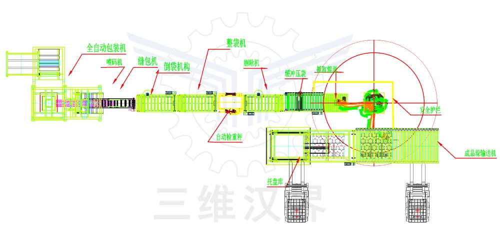 硫酸銨自動化包裝碼垛裝車系統(tǒng)工作流程